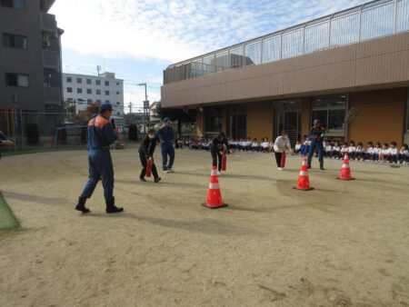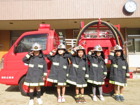 今日は、ひらりすに消防士さんが来て、一緒に避難訓練を