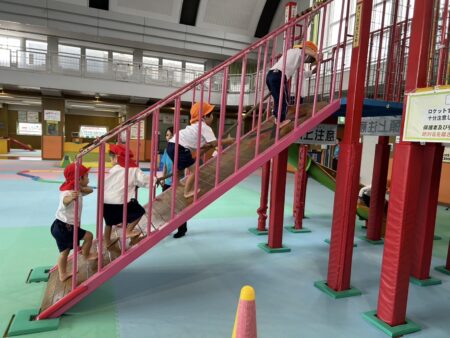 上手く登れません💦難しいけど挑戦する子どもたち。