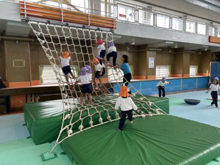 ゆらゆら揺れる大きいネットは、手足の指をしっかり使わないと