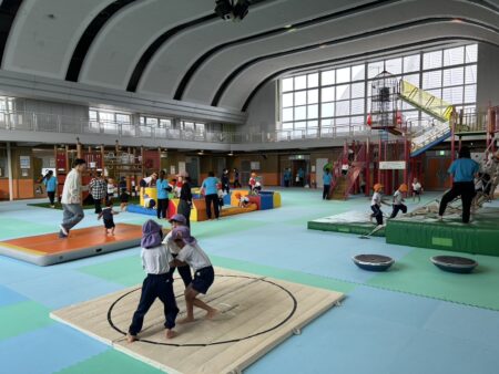 相撲コーナーでは、きりん組さんの力比べも始まりました✨