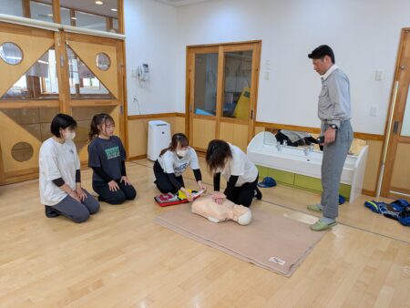 今日は職員の救急講習がありました。万が一の事態に備えて