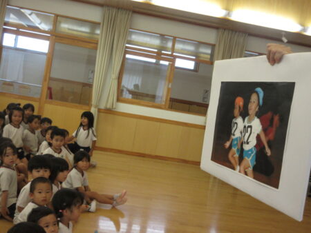 先生の出し物も運動会にちなんだお話でした。かけっこをして